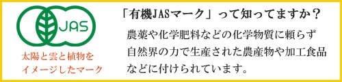 登録認定機関が厳密に検査し見事認定された生産者や小分け業者のみがこの「有機JASマーク」を貼ることができます。