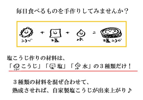 原材料名: 【生こうじ】〇品種:にこまる 〇産地:静岡県 【塩】〇瀬戸内産 |