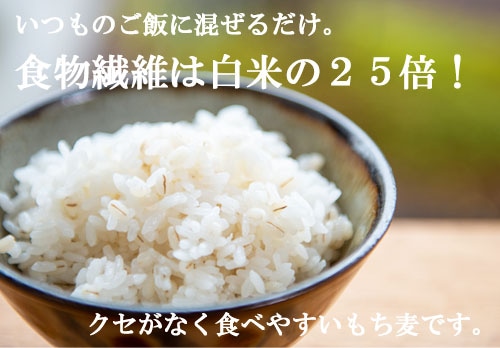 大麦の中でも水溶性食物繊維を最も多く含みパサつきにくいのが特徴。